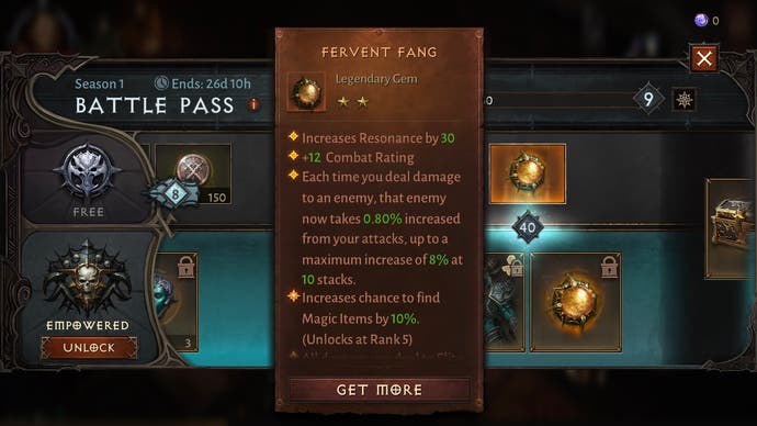 Vous pouvez également obtenir des joyaux légendaires des niveaux gratuits et premium de la bataille à Diablo Immortal. Si vous achetez le Pass Battle Pass pour 5 £.49, vous obtiendrez tous les joyaux légendaires des deux niveaux, tant que vous atteignez les niveaux requis avant la fin de la bataille.