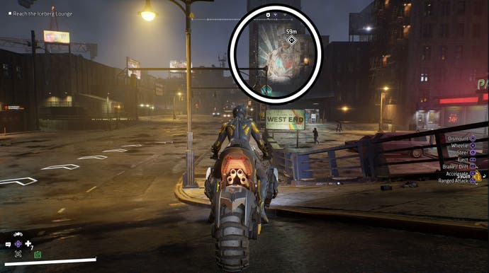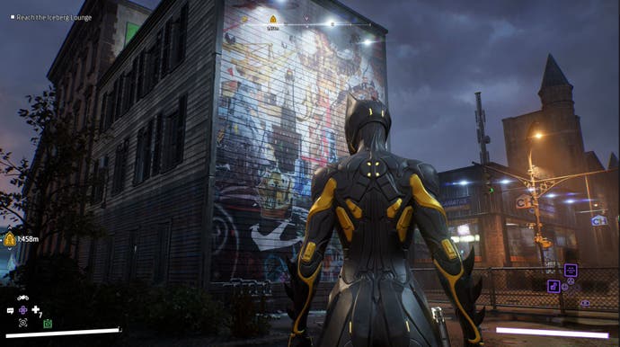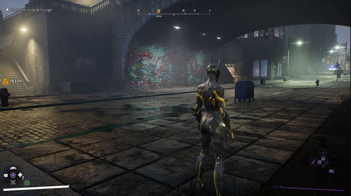 Si vous venez de Old Gotham, alors vous voudrez enlever la sortie à droite du pont. Une fois que vous avez atteint la route ci-dessous, continuez directement vers l’avant sur une petite volée d’escaliers et l’art sera sur le bâtiment à votre gauche.